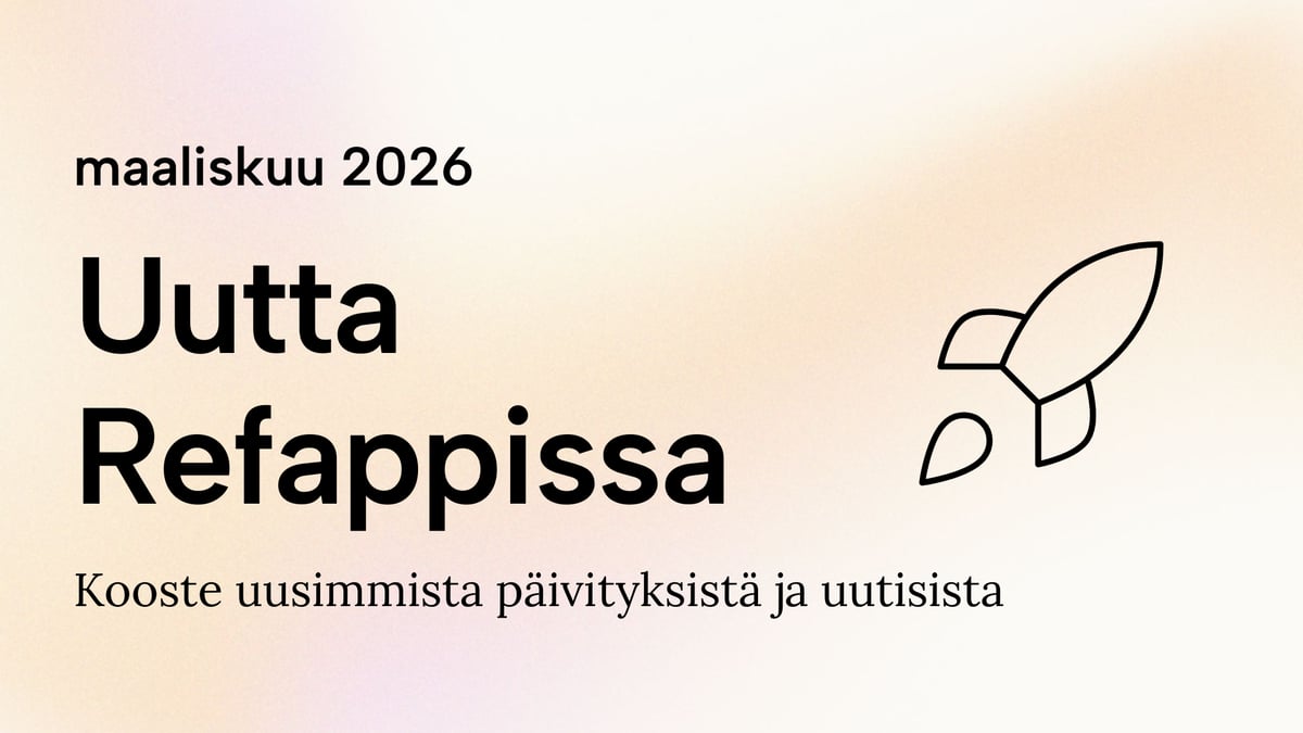 Olemme täällä jälleen Refappin tuoreimpien kuulumisten kanssa! Tuotekehityksessämme on tehty kovasti töitä, ja nyt pääsemme jakamaan kanssasi uusimmat toiminnot ja oivallukset. Katso alta, mitä uutta ...